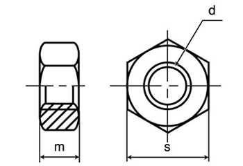 ・JIS----2面幅(平径)が一般のナットに比べ大きい(例M8=14mm)