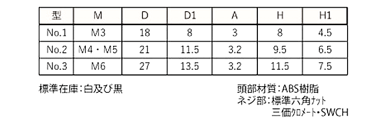 黒色 ABS樹脂 カンツーノナット (ねじ部鉄)(大丸鋲螺製作所) の商品一覧