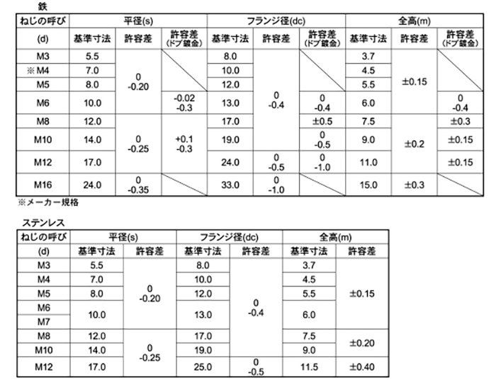| サイズ | 表面処理 | 入数(単価:税込) ※最小販売条件:1小箱・袋〜 | 在庫