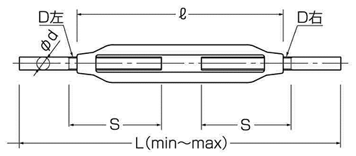 ・ターンバックルは右ねじと左ねじを両側に切る事により、1回転で左右同時に締めつけが行える締結部材です。