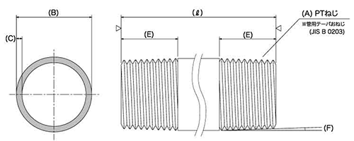 鋼管 尾川パイプ 両長ニップル(パイプニップル)(NI)