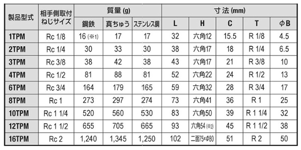 日東工器 TSPカプラ BRASS TPM型 プラグ (めねじ取付用/真鍮製)