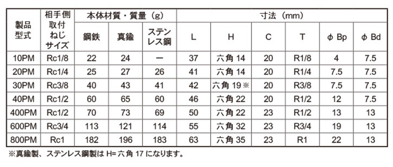 日東工器 ステンレス ハイカプラ プラグ (めねじ取付用)(PM型)