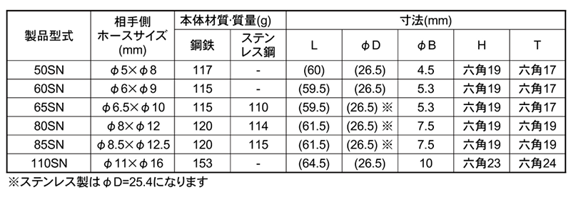 日東工器 ステンレス ナットカプラ ソケットSN型(ウレタンホース取付用) の商品一覧