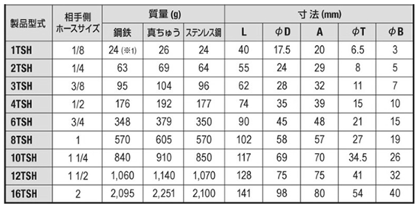 日東工器 TSPカプラ ステンレス EPDM TSH型 ソケット(ホース取付用)