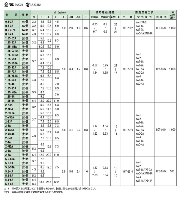(裸圧着端子)角先開形端子(A形) ■-■A