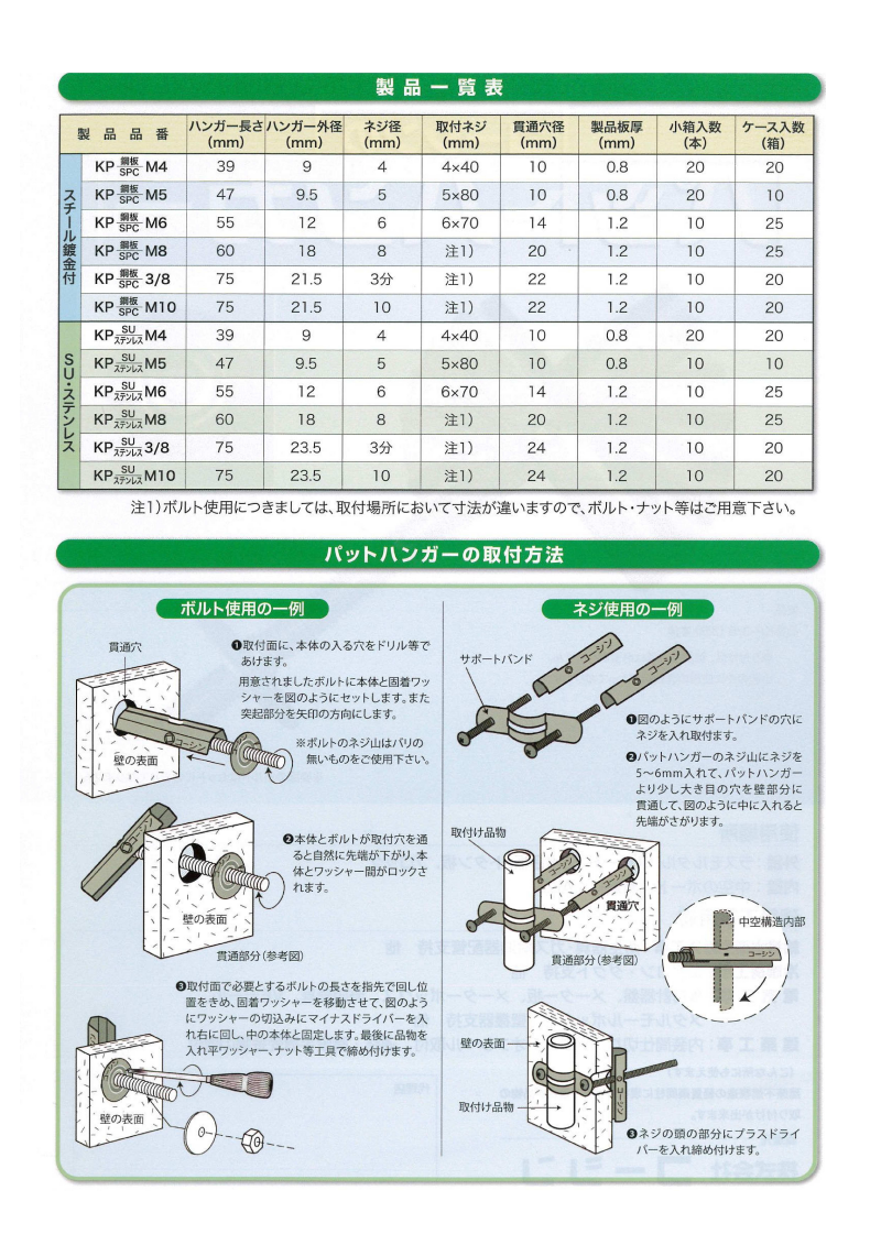 鉄 パットハンガー(中空用)(ミリネジ) の商品一覧