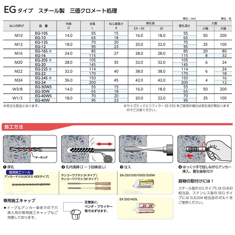 鉄 イーグルアンカー(EG)サンコーテクノ(樹脂併用めねじアンカー)