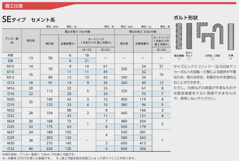 サンコー サイズミックエコフィラー無機系注入式アンカー(SE)