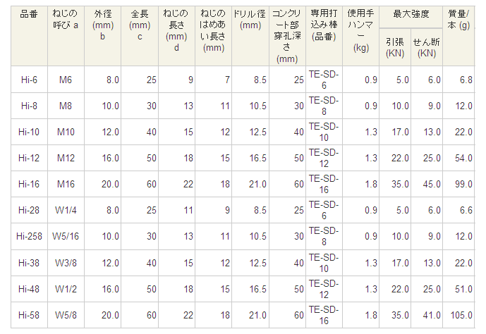 鉄 ホーク・ヘッドインアンカー(メネジ内部コーン式)(KFC製) の商品一覧