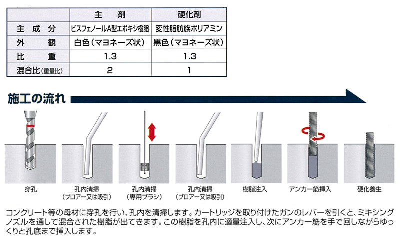 ・優れた固着性能が得られる高性能エポキシ樹脂を採用しました。