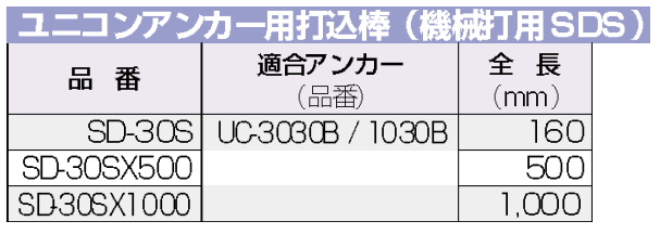 打ち込み棒 ユニコンアンカー・ショートタイプ用 (ハンマードリルSDS用) (工具) の商品一覧