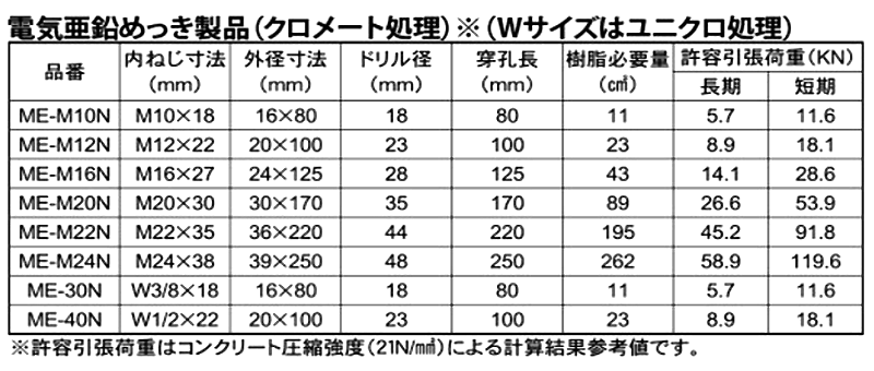 鉄 ケミカルインサート ME (内ねじ付)(樹脂接着系アンカー)(エイ・ワイ・ファスナー)