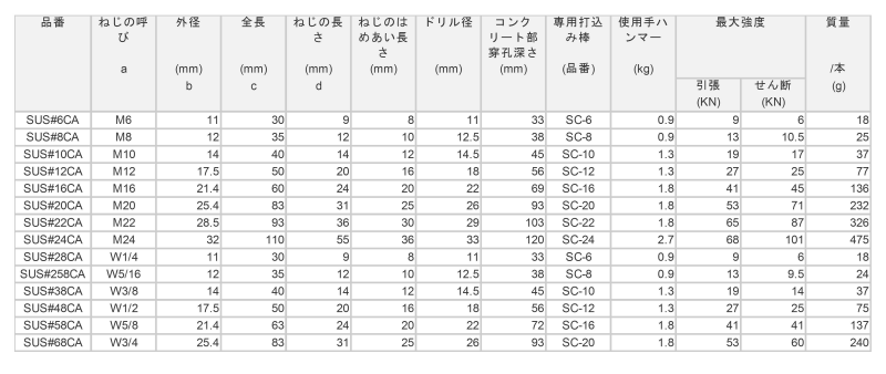ステンレス ホーク・カットアンカー (メネジタイプ・本体打込式)