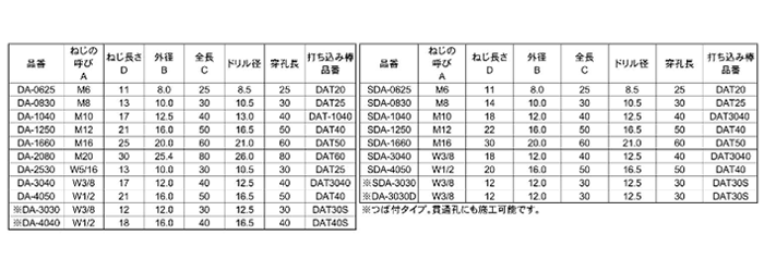 ステンレス ドロップインアンカー(DA) (メネジ内部コーン式)AY