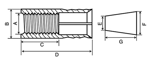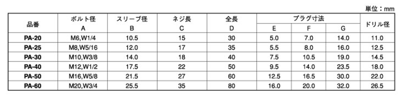 ステンレス プラグアンカー(SPA)(メネジタイプ・本体打込式)(ミリ・インチ)(AYファスナー)