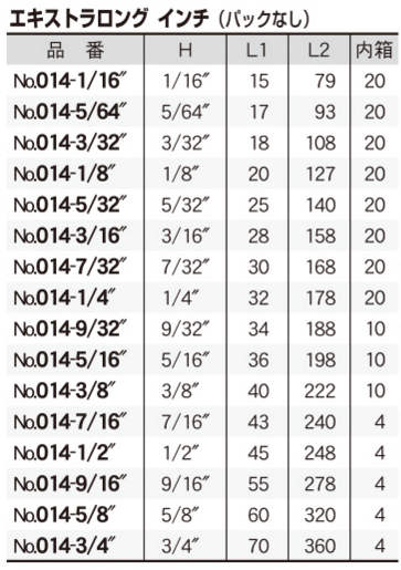 エイト 六角棒スパナ(エキストラロング)(インチ) No.014-