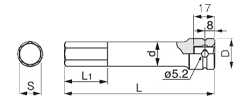 TONE インパクト用ロング ヘキサゴンソケット (4AH-L)(差込角12.7mm)