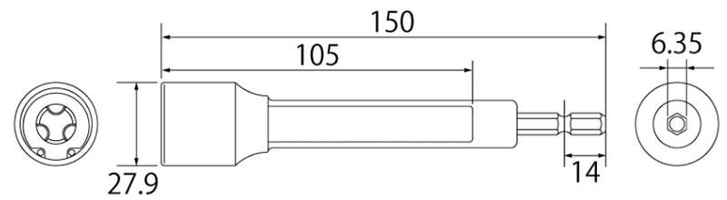 トップ工業 電動ドリル用全ネジソケットロングタイプ (ZNS-3L)(W3/8用・六角軸6.35mm)
