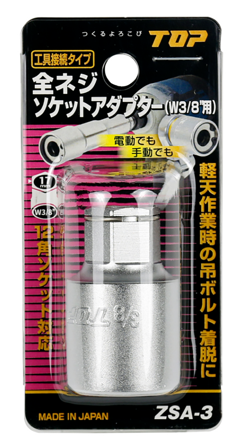 トップ工業 電動ドリル用全ネジソケットアダプター (ZSA-3)(W3/8用)(対辺17mm/12角ソケット対応)