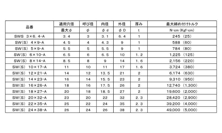 SW(S)-A型:頭付ボルト用 内径締め代なしタイプ