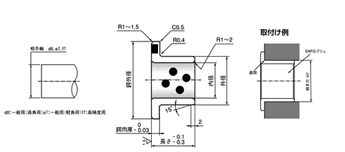 大同メタル製 ダイスライドスラストブシュ(SAFG)(内径x長さ)(固体潤滑剤埋込み型軸受)