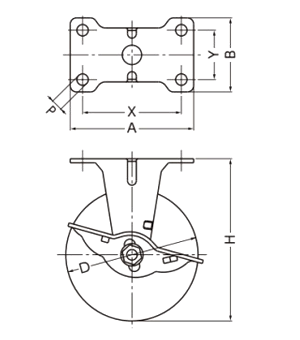 ハンマーキャスター415ER (φ40~125)(プレート式・固定・ストッパー付)(クロームメッキ)