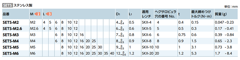 | SETS-M2-6 (p=0.4)(20本入) ピッチ=0.4 低頭 YN0000740020006000 |