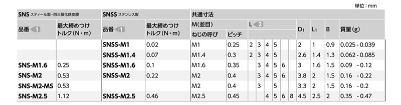 | SNSS-M1-2 (p=0.25)(10本入) ピッチ=0.25 YN0001300010002000 |