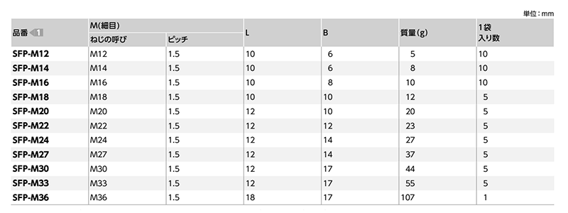 | SFP-M12 (p=1.5)(10本入) ピッチ=1.5 細目 YN0001830120000000 |