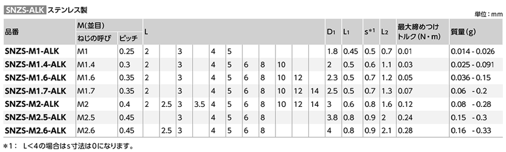 | SNZS-M1-4-ALK (p=0.25)(50本入) ピッチ=0.25 YN0003180010004000 |