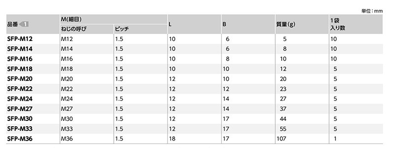 | SFP-M16-VA (p=1.5) ピッチ=1.5 細目 YN0011830160000000 |