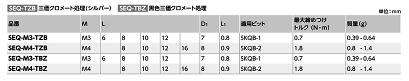 | SEQ-M3-12-TBZ-VA (p=0.5) ピッチ=0.5 低頭 YN0012950030012000 |